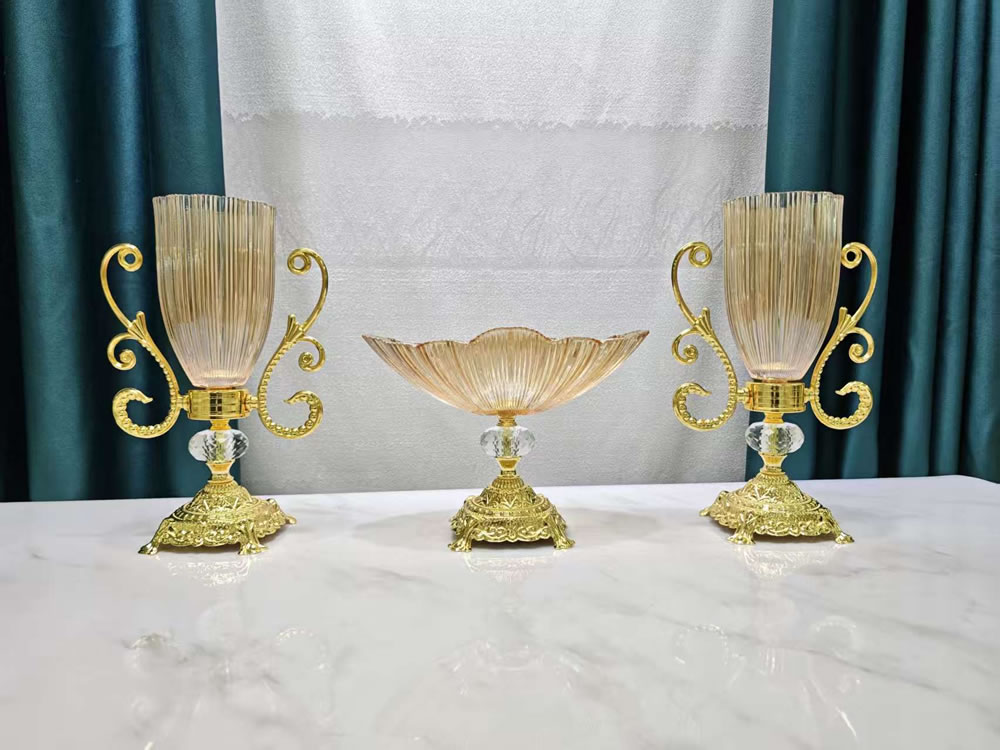 - Glass fruit plates/trays and utensils - Glass vase - Glass home decoration set - Candlestick